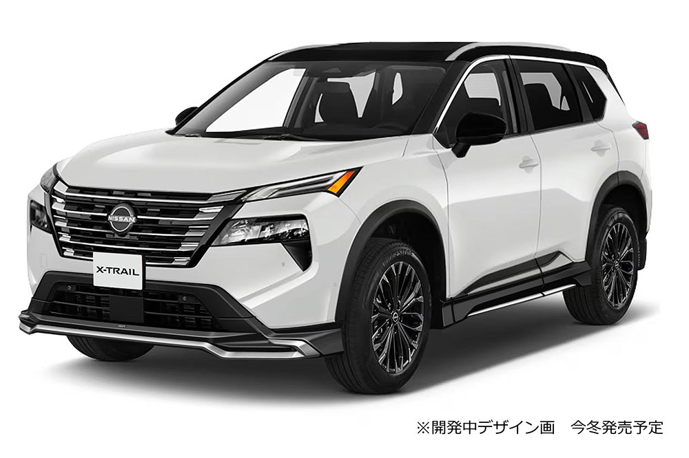 今回の目玉は、9月にマイナーチェンジを受けたばかりの 新型エクストレイル用エアロパーツ試作品を装着したデモカー の初公開です。